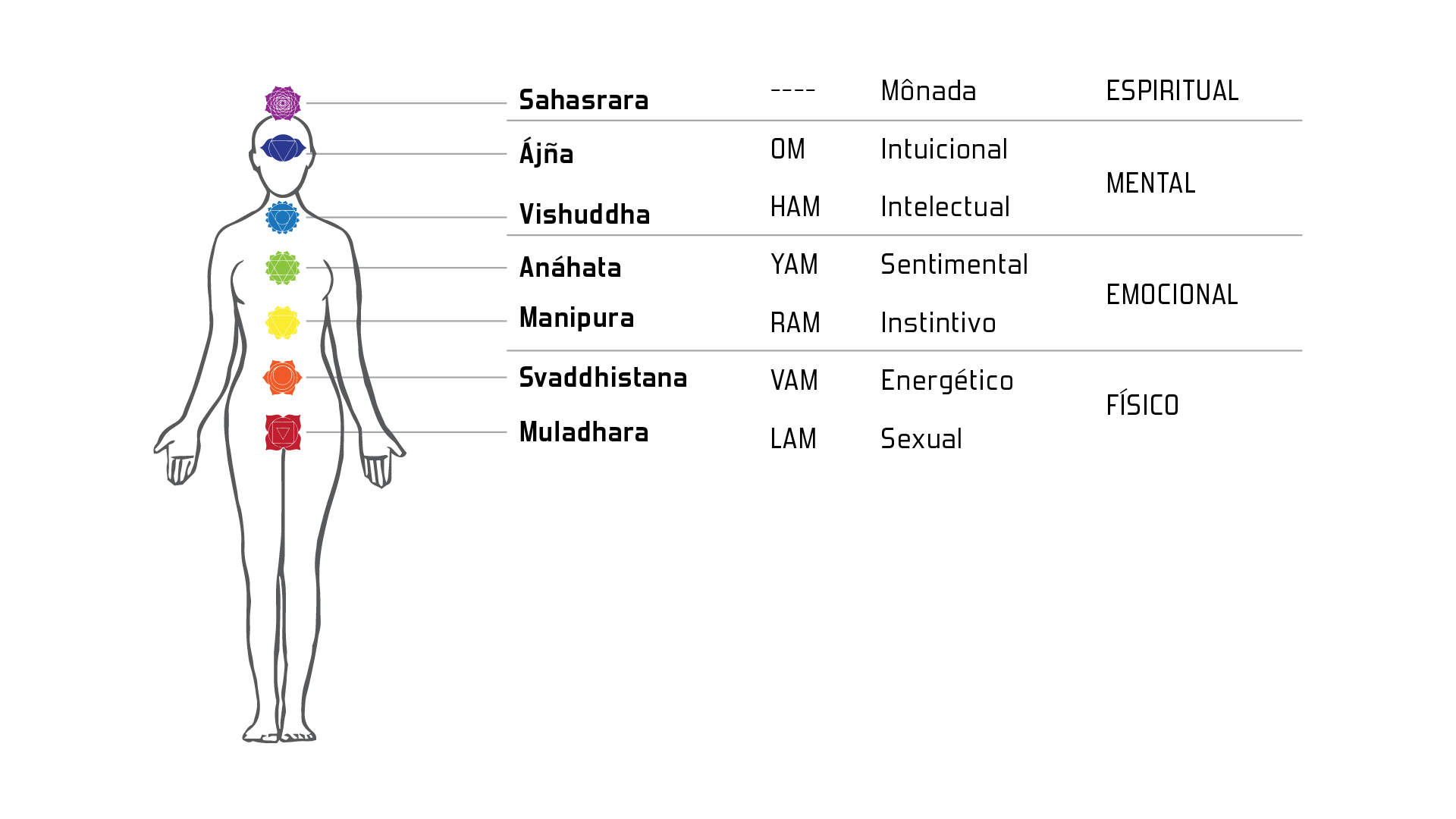 Os sete principais chakras são: